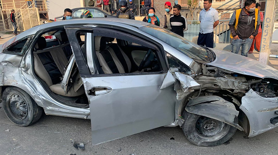 काठमाडौं । पेप्सिकोलामा कार अनियन्त्रित भएर दुर्घटना हुँदा एकजनाको मृत्यु भएको छ । मृत्यु हुनेमा तीनकुने निवासी २१ वर्षीय दितम गोभाजु हुन् । प्रहरी वृत्त, बानेश्वरका डीएसपी दक्षबहादुर बस्नेतका अनुसार बिहान साढे ६ बजे भएको दुर्घटनामा गम्भीर घाइते उनलाई ट्रमा सेन्टर लग्दा चिकित्सकहरुले मृत घोषणा गरेका हुन् । प्रहरीका अनुसार गोभाजुसहित ७ जना सवार बा १० च २८६४ नम्बरको कार मुलपानीबाट जडिबुटीतिर आउँदै गर्दा पेप्सिकोला काठमाडौं–३२ वडा कार्यालय अगाडि अनियन्त्रित भएर रेलिङमा ठोक्किएर दुर्घटना भएको हो । गाडी क्षत्‌विक्षत् हुने गरी भएको दुर्घटनामा गोभाजुको मृत्यु भएको छ भने अर्का एकजनाको हातमा चोट लागेको छ । अन्यको अवस्था सामान्य छ । चालक २० वर्षीय वीरेन्द्रराज श्रेष्ठलाई प्रहरीले नियन्त्रणमा लिएको छ । श्रेष्ठले दिएको बयान अनुसार उनीहरु मुलपानीमा साथीको जन्मदिन मनाएर फर्किदै थिए ।