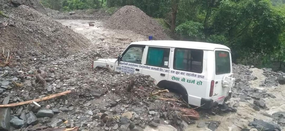 बिहानैदेखि पानी परिरहेको थियो, बाटोमा खहरे खोला उर्लिएपछि एम्बुलेन्स रोकियो। हेर्दाहेदै खहरेमा लेदोसहित आएको बाढीले एम्बुलेन्स बगाइदियो।
