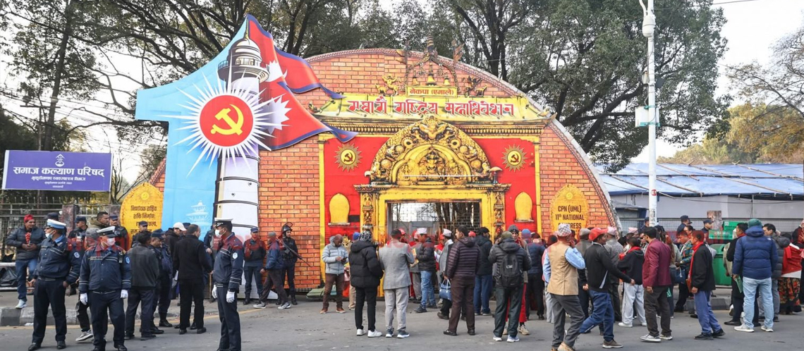 काठमाडौँ । नेकपा एमालेको ११ औं महाधिवेशनको दोस्रो दिन भृकुटीमण्डपमा बन्दशत्रको तयारी शुरू भएको छ । उच्च सुरक्षा व्यवस्थासहित शुरू गर्न लागिएको बन्दशत्र निर्धारित समयभन्दा केही ढिलो हुने भएको छ । उपमहासचिव प्रदीप ज्ञवालीका अनुसार केही प्राविधिक तयारी भइरहेका कारण ८ बजे शुरू हुने पूर्व तालिकामा सामान्य ढिलाई हुन लागेको हो । बन्दशत्रस्थलको सुरक्षाका निम्ति नेपाल प्रहरीले २ सय भन्दा बढी जनशक्ति परिचालन गरेको छ । एमालेले सोही प्रयोजनका लागि अलग्गै स्वयंसेवक दस्ता निर्माण गरेको छ । सुरक्षालाई दृष्टिगत गर्दै भृकुटीमण्डप चौरको चारै दिशालाई सर्वसाधारणको आवतजावत निषेध गरिएको छ । भृकुटीमण्डप चौरभित्र महाधिवेशनमा भाग लिन पाउने बाहेकका व्यक्तिलाई कडाइका साथ प्रवेश निषेध गरिएको छ । महाधिवेशनका कारण सार्वजनिक सडक अवरोध नहुने भएको छ । उपत्यका ट्राफिक प्रहरी प्रमुख एसएसपी नवराज अधिकारीका अनुसार भृकुटीमण्डपभित्र छिर्न बाहेक कुनै किसिमको सडक अवरोध छैन । महाधिवेशनका सहभागीका सवारीसाधन पार्किङका लागि टुँडिखेलमा व्यवस्था मिलाइएको उनले बताए । केन्द्रीय समिति बैठक बस्ने भएकाले बन्द सत्र केही विलम्ब हुने भएको छ ।