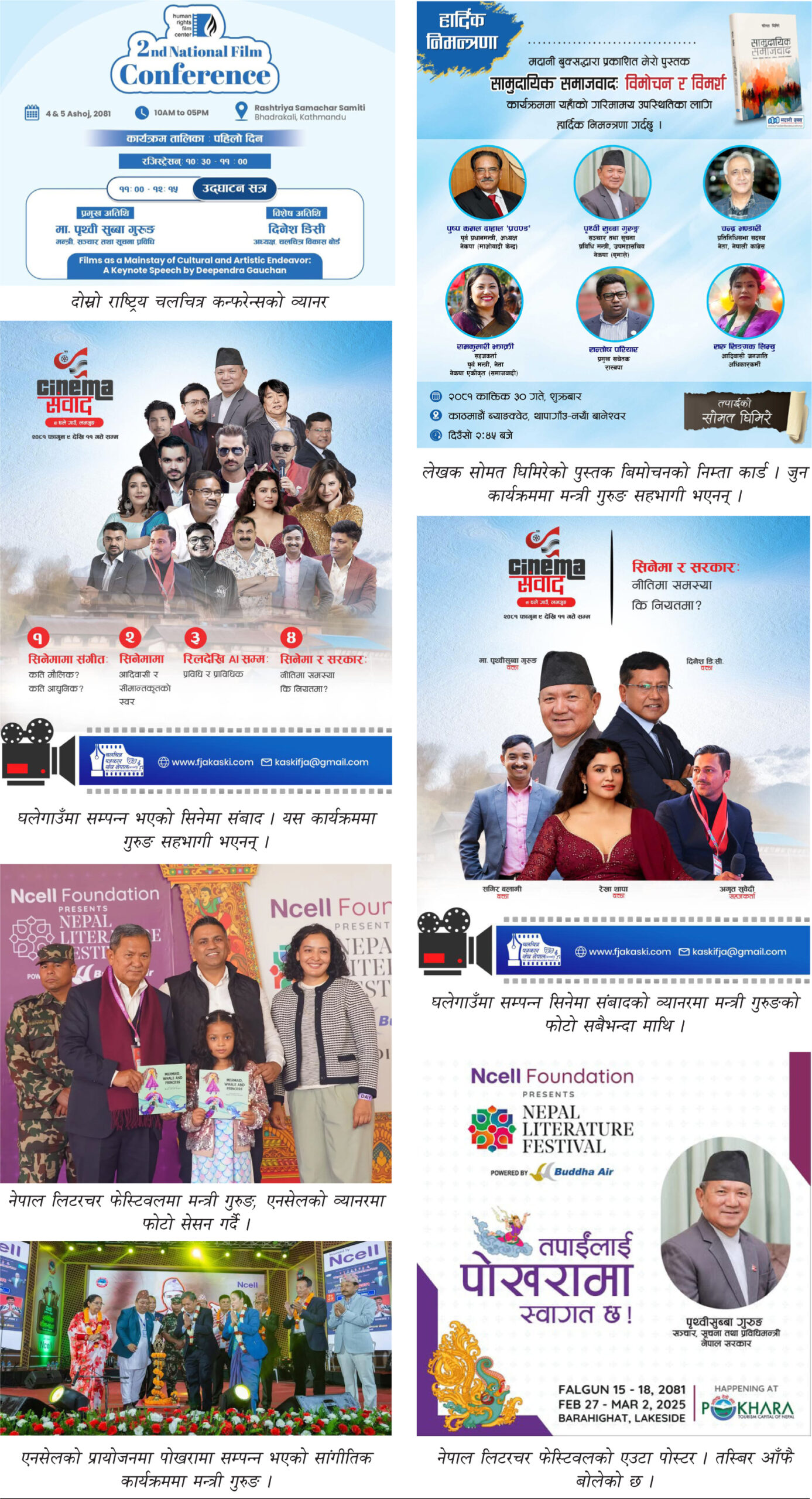 त्यसैगरी गत मंसिर महिनाको तेस्रो साता सम्पन्न भएको नेपाल मानवअधिकार अन्तर्राष्ट्रिय फिल्म फेस्टिवलको समापन समारोहमा पनि उनले यस्तै हर्कत देखाए । अन्तर्राष्ट्रियस्तरको फिल्म फेस्टिवलमा आयोजक संस्थाले अवार्ड वितरण कार्यक्रमको प्रमुख अतिथि संचार मन्त्री भनेर पत्राचार एवं प्रचार गरेको थियो । तर उनी यसमा पनि सहभागी भएनन् । उनको अनुपस्थितीमा पाल्पाबाट निर्वाचित सांसद ठाकुर बेल्बासेलाई सो कार्यक्रमको प्रमुख अतिथि बनाइएको थियो । चलचित्र पत्रकार संघ नेपालले २०८१ फागुन ९ देखि ११ सम्म उनकै गृह जिल्लामा पर्ने घलेगाउँमा सिनेमा सम्वाद कार्यक्रम आयोजना गरेको थियो । उनलाई समापन समारोहको प्रमुख अतिथिको पक्का गरेर विभिन्न किसिमका पोस्टर र निम्तो कार्ड प्रकाशन गरिएको थियो । संचार मन्त्री आउने भनेर व्यापक प्रचारप्रसार गरिएको थियो । तर अन्तिममा उनी कार्यक्रममा सहभागी भएनन् । आयोजकलाई कार्यक्रममा सहभागी हुन नभ्याउने जानकारी गराए ।